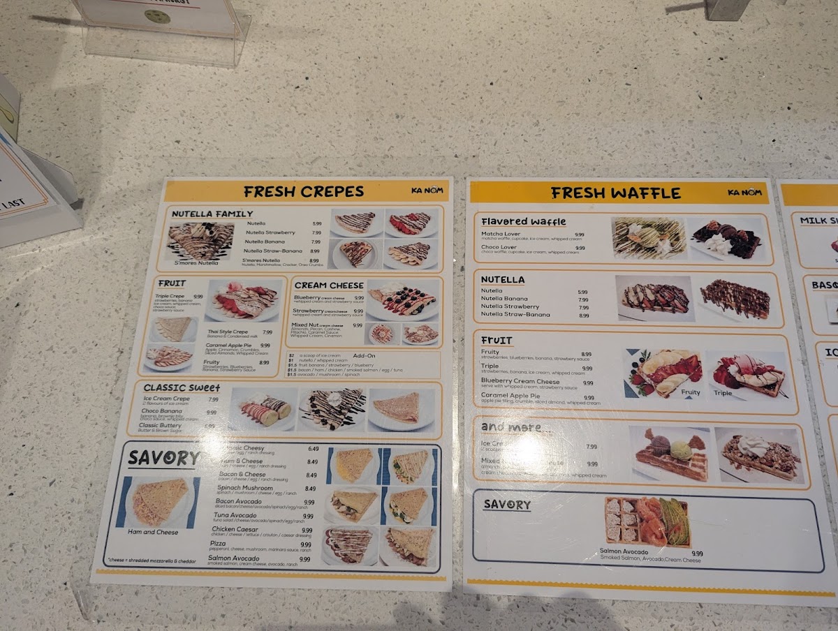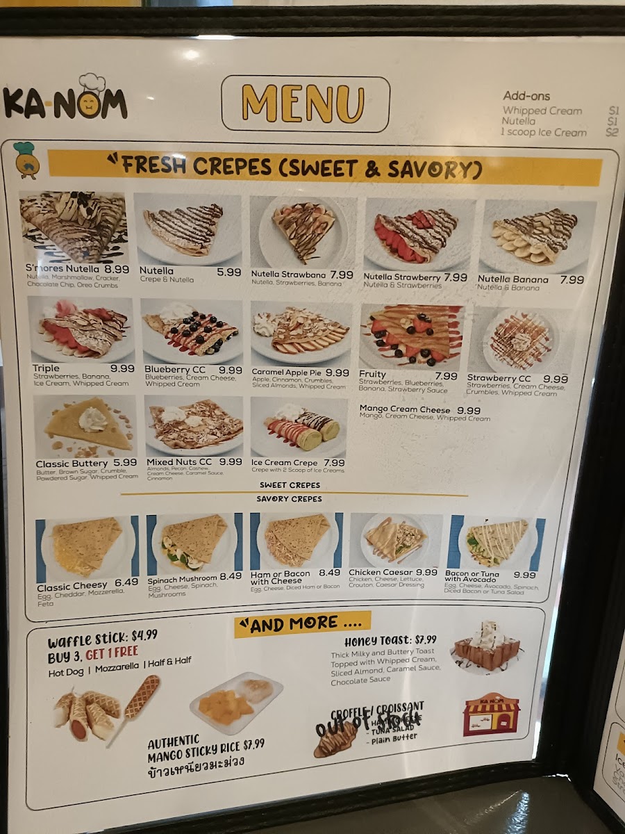 Welcome to Kanom, a charming café tucked away at 109 McCaul St in Toronto. This delightful spot has quickly become a favorite for its scrumptious crepes and refreshing beverages. The menu highlights the Nutella Strawbana Crepe, perfectly blending Nutella with fresh strawberries and bananas, as well as savory options like the Ham & Cheese and Spinach & Mushroom Crepes.